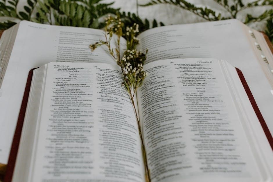 Psalms is thoughtfully organized into five distinct books, each with unique themes and characteristics․ A PDF version reveals this structure, aiding comprehension and focused study of the poetic text․